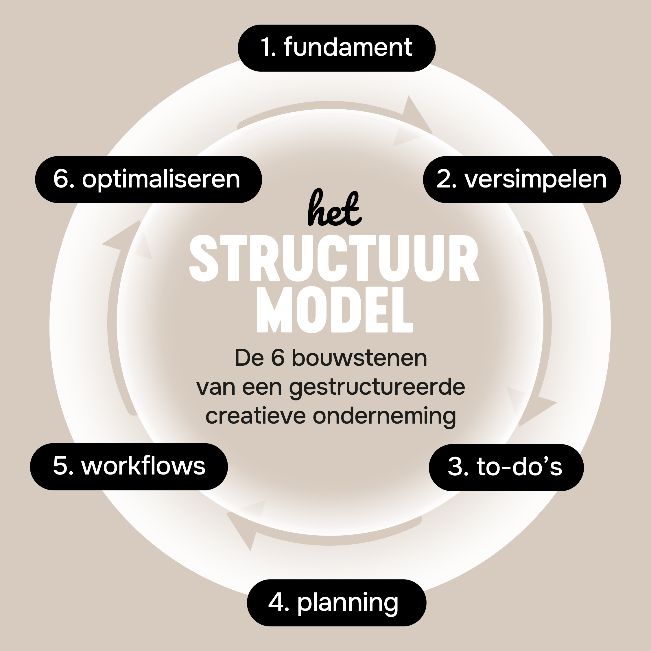 In de StructuurMethode bouwen we deze zes onderdelen samen op. Zodat je stopt met aanrommelen en weer regie krijgt over hoe je werkt.